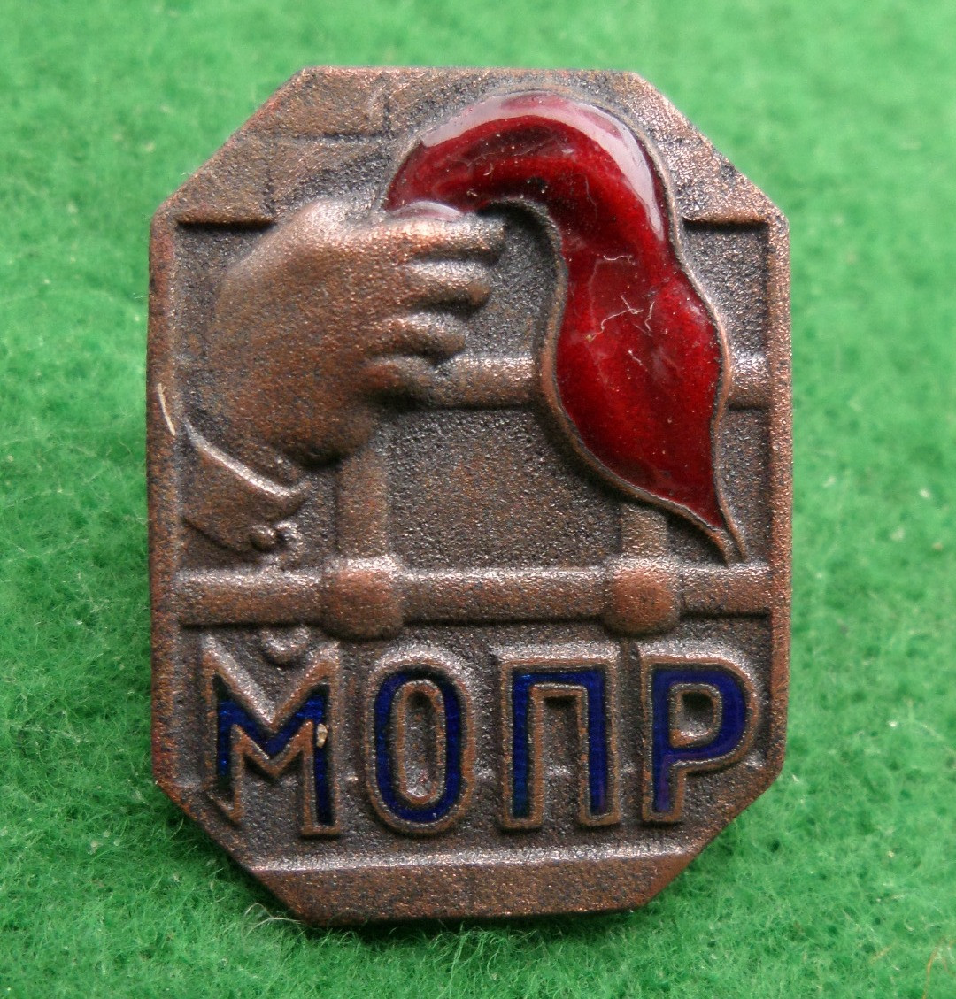 Знак МОПР Міжнародна організація допомоги борцям революції 1922-1931 томпак, гаряча емаль муляж